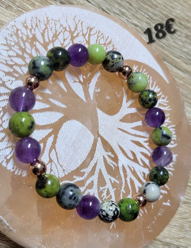 L'association de la chrysoprase citron et de l'améthyste est particulièrement harmonieuse, tant sur le plan énergétique que spirituel.
